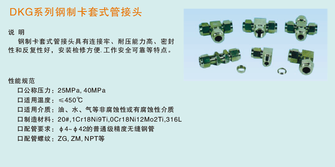 產(chǎn)品名稱:DKG系列鋼制雙卡套管接頭
