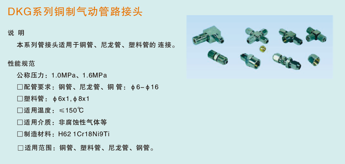 產(chǎn)品名稱(chēng):DKG系列銅制卡套式氣動(dòng)管路接頭