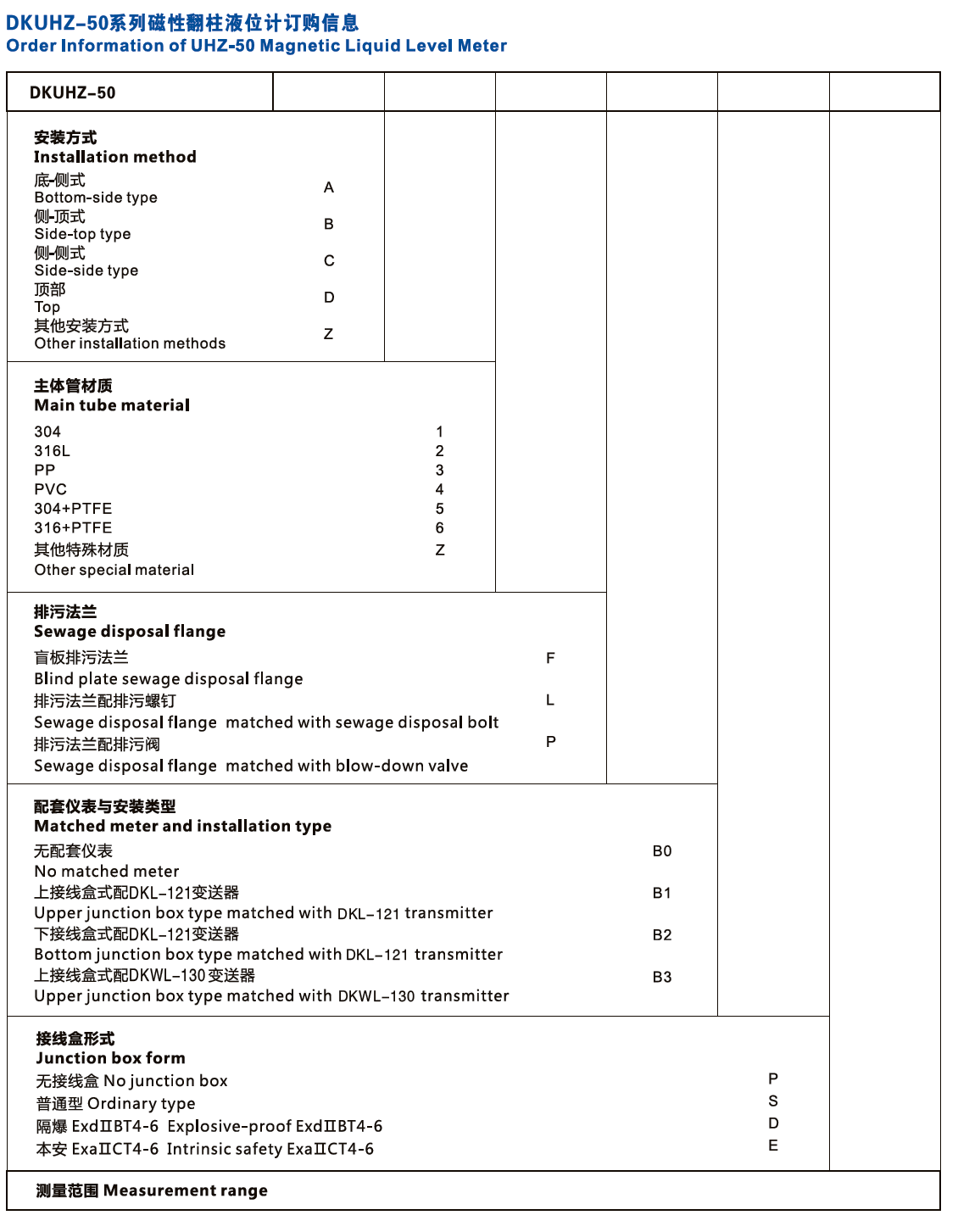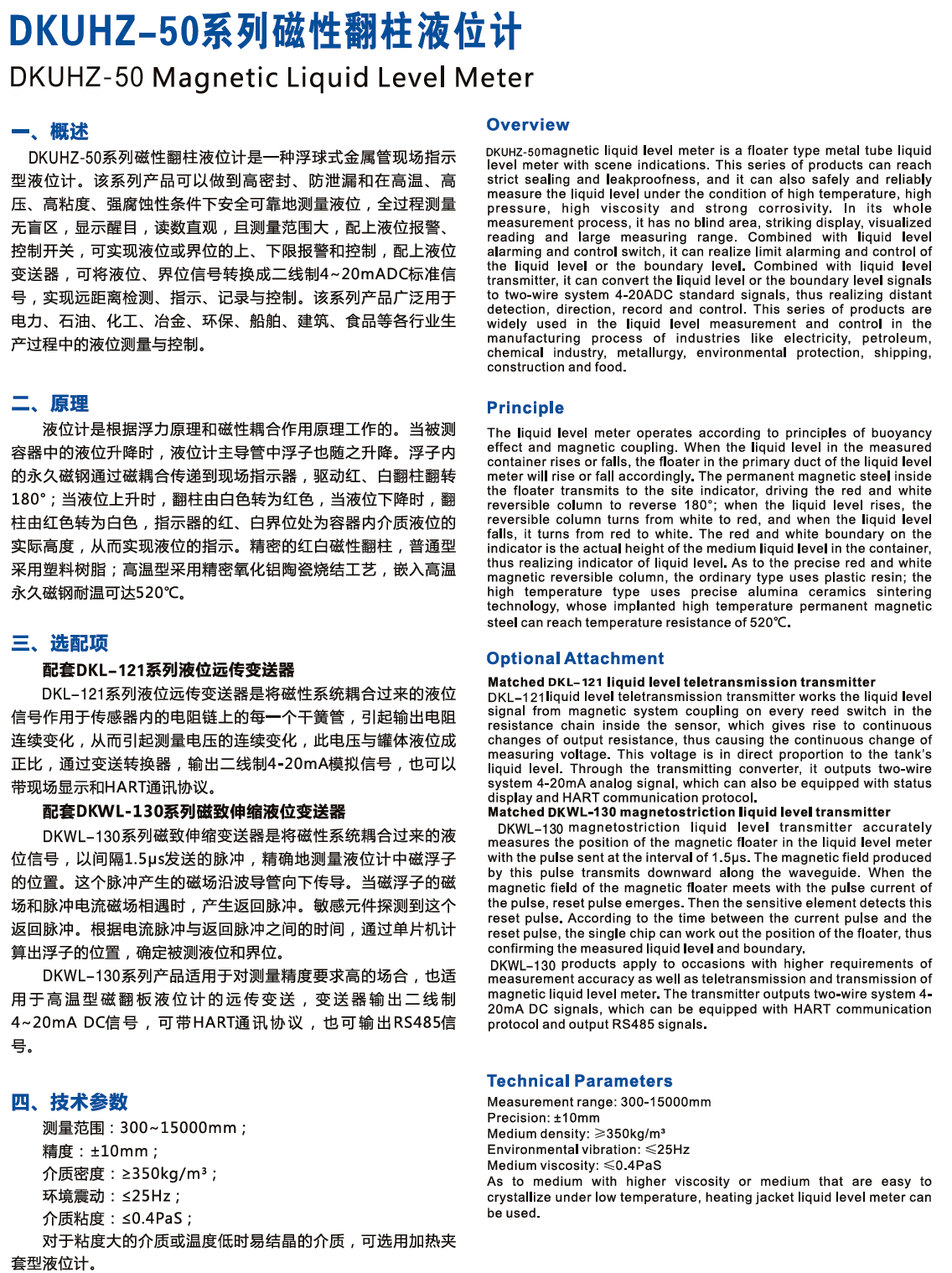 DKUHZ-50系列磁性翻柱液位計