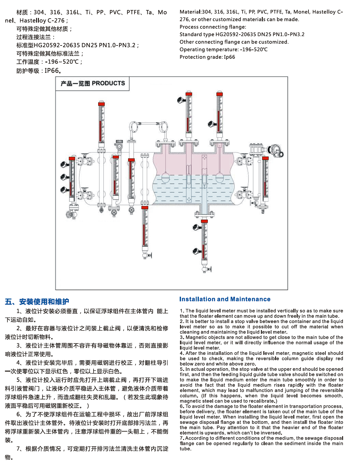 產(chǎn)品名稱:DKUHZ-50系列磁性翻柱液位計