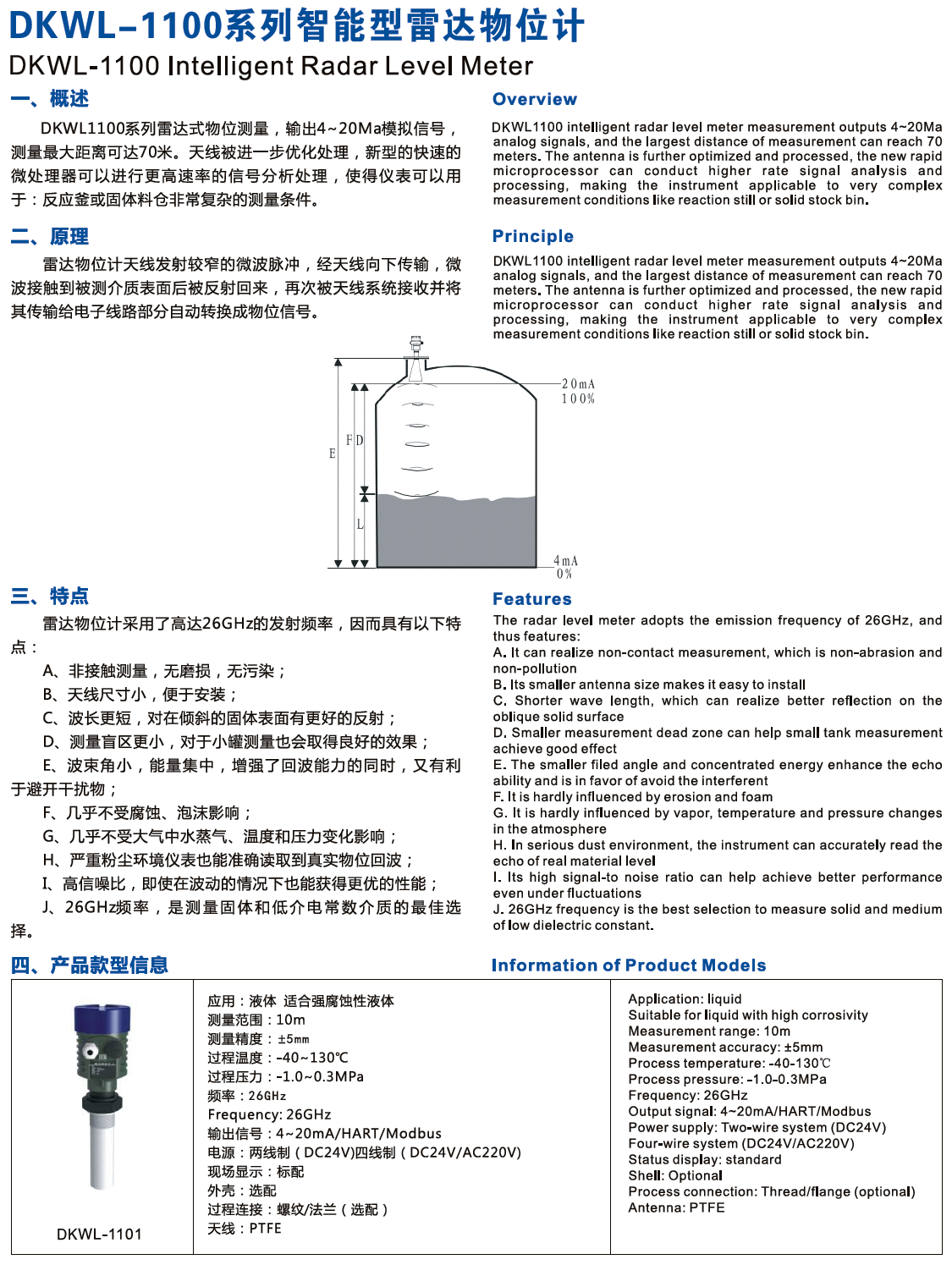 產(chǎn)品名稱:DKWL-1100系列智能型雷達(dá)物位計(jì) 產(chǎn)品描述: 添加時(shí)間:2020-03-13 14:27:20 瀏覽: 手機(jī):0550-7770786 傳 真:0550-7770786 電 話:0550-7770786 郵 箱:ahdkyb@126.com
