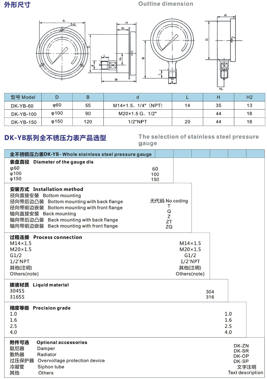 產(chǎn)品名稱:DK-YB系列全不銹鋼壓力表