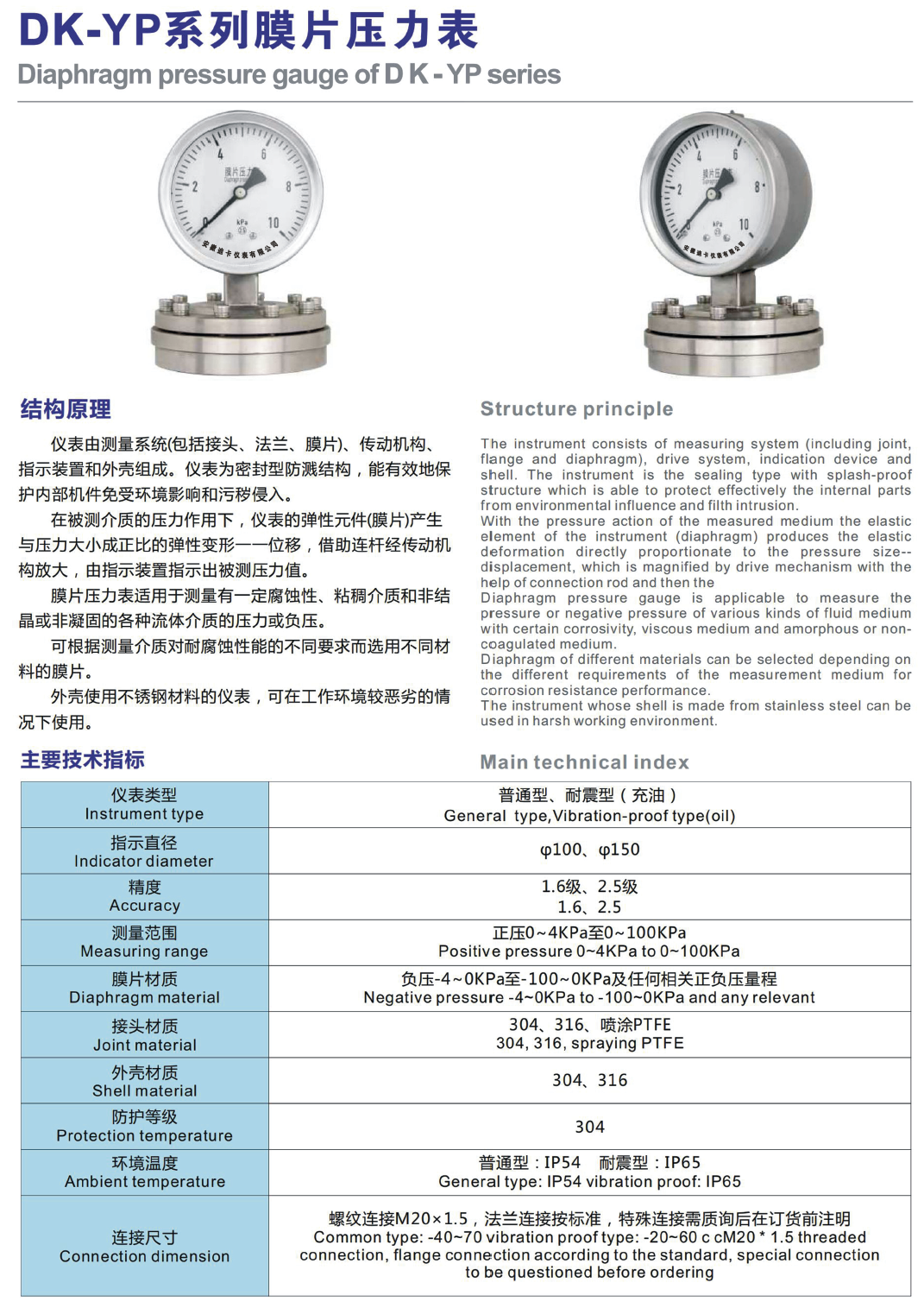 產(chǎn)品名稱:DK-YP系列膜片壓力表