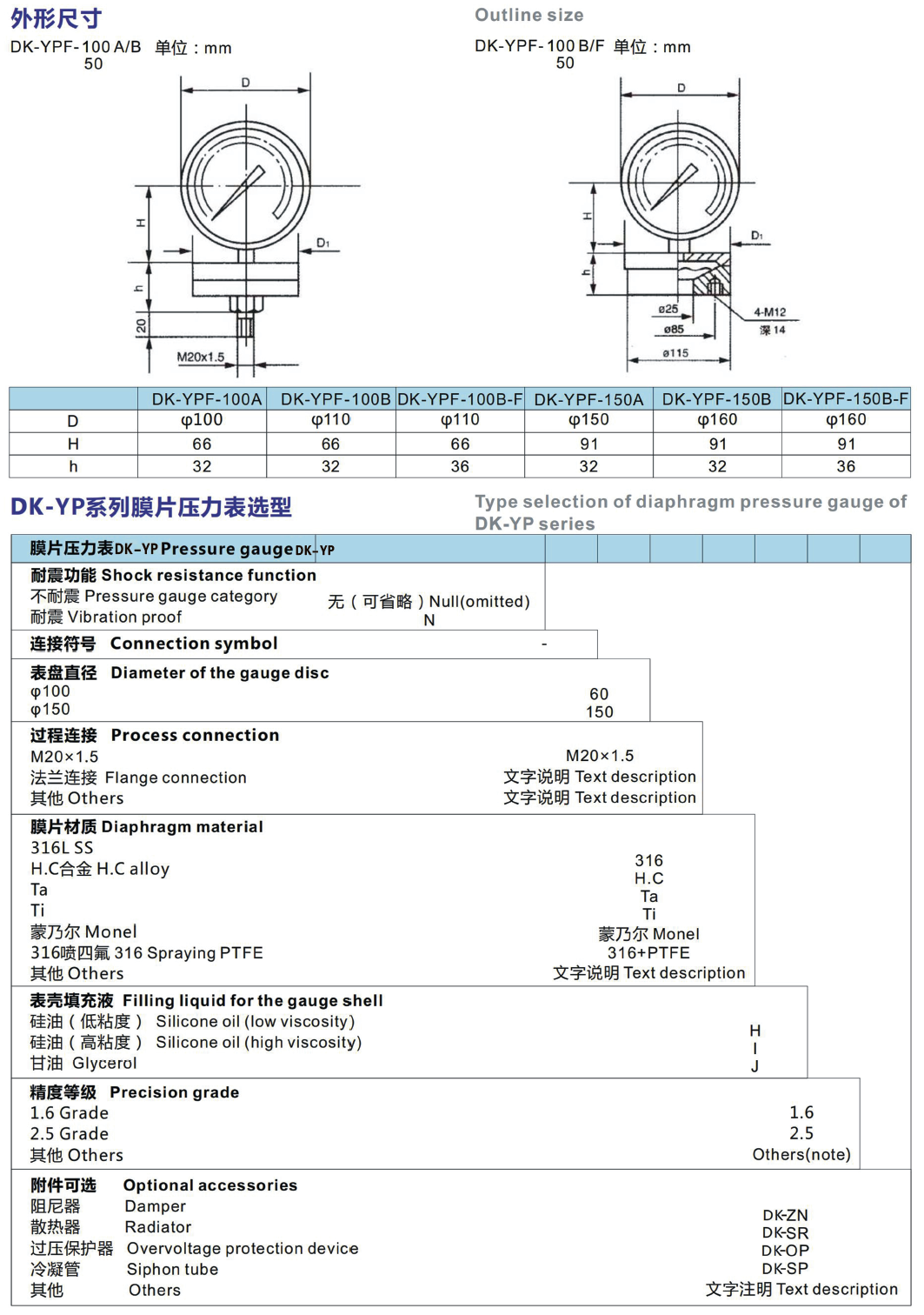 DK-YP系列膜片壓力表