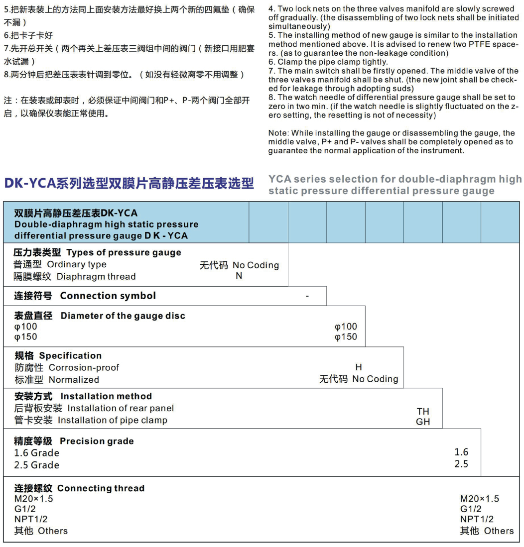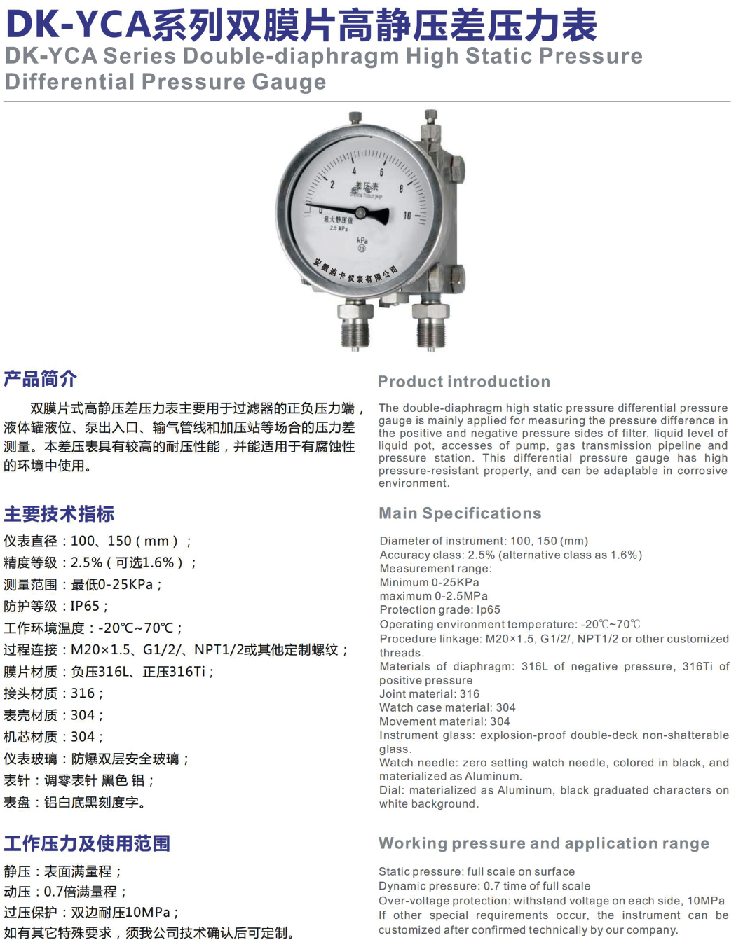 產(chǎn)品名稱:DK-YCA系列雙膜片高靜壓差壓力表