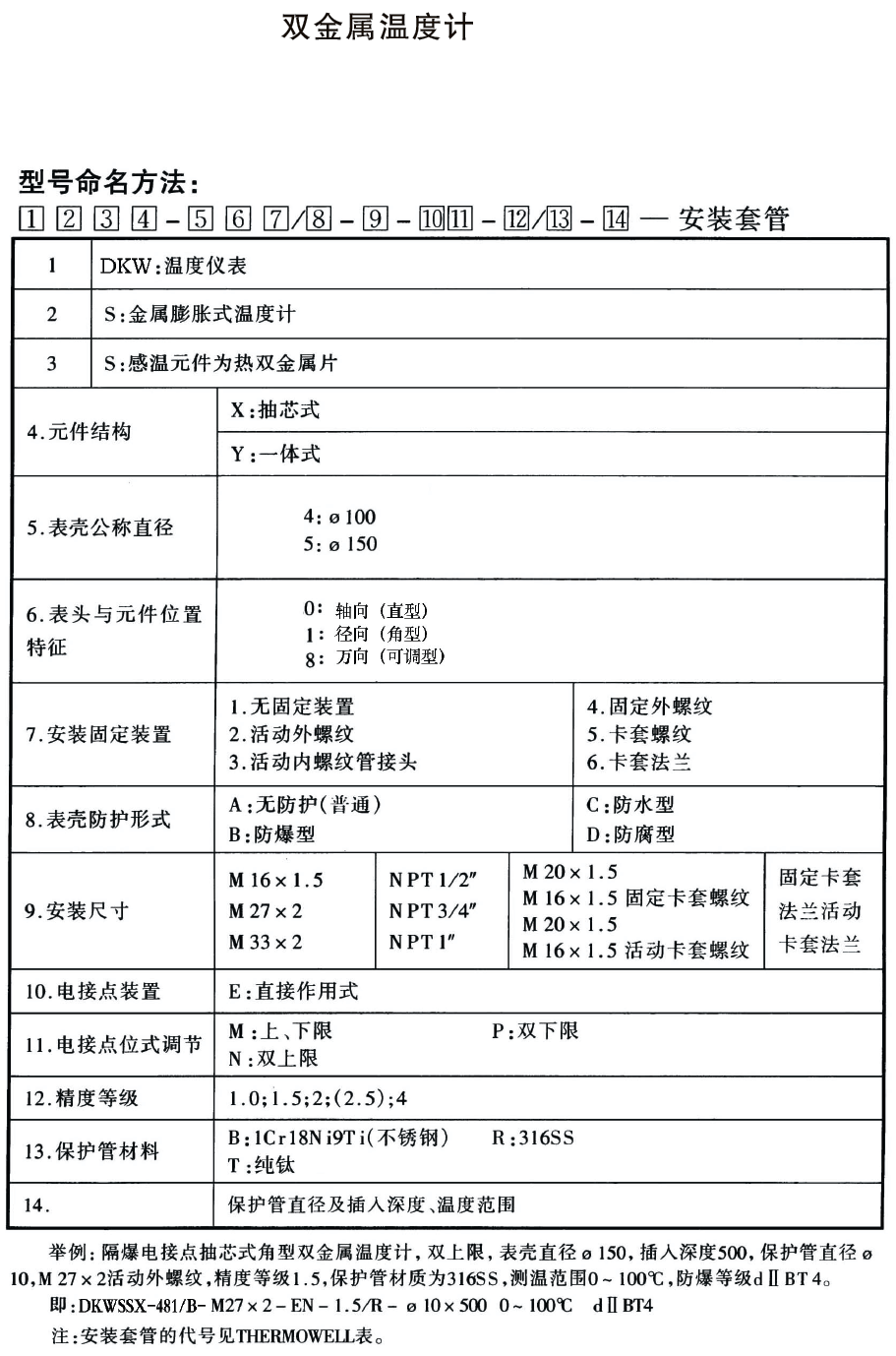 DKTC系列熱電偶及DKRT系列熱電阻型號命名方法及技術資料