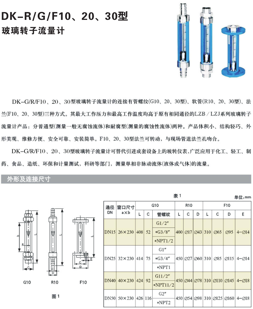產(chǎn)品名稱:DK-R/G/F10、20、30型玻璃轉(zhuǎn)子流量計(jì)