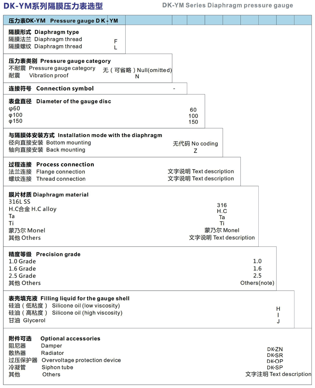 產(chǎn)品名稱:DK-YM系列隔膜壓力表